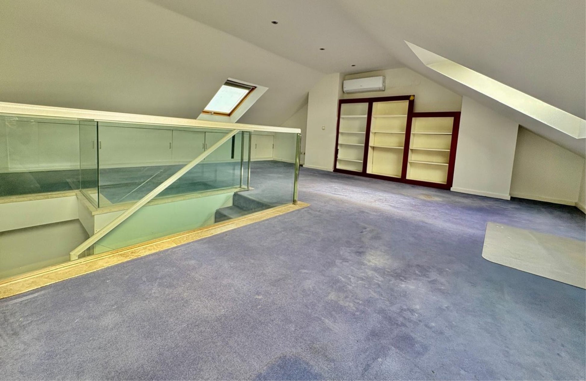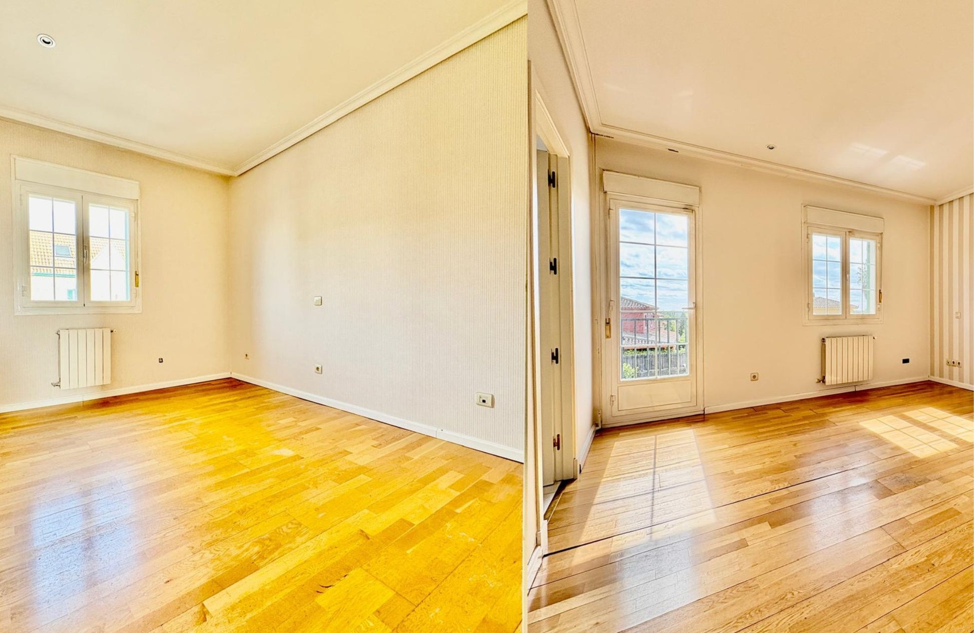 Blueberry Homes presenta este chalet de 307 m2 con dos plantas, buhardilla y sótano. Dispone de salón-comedor con salida al jardín, cocina con zona de desayuno y aseo. En la primera planta hay tres dormitorios y dos baños, el principal en suite; la buhardilla ofrece un espacio polivalente. El sótano incluye garaje para dos coches, trastero, zona de lavado y habitación de servicio. Urbanización con seguridad 24h, piscina, club social, pistas deportivas y amplias zonas verdes.